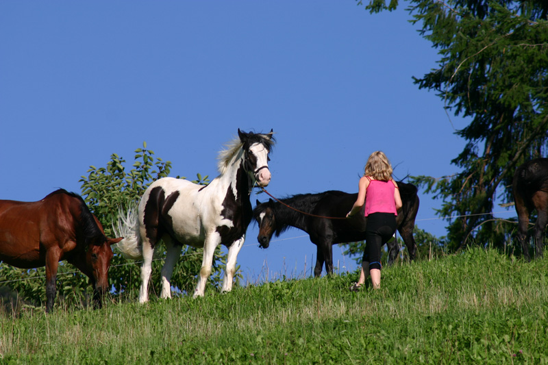 Kühe, Katzen, Hunde, Pferde, Kälber, Ziegen ein Hase, Meerschweinchen Tiere gibt es auf dem Hof zur genüge.